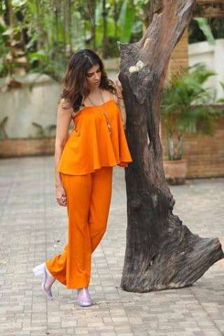 Actress Lakshmi Manchu featured in a dark mustard hue with thin straps and parallel pants. Making a fab comeback from 70's in @emblaze_mb