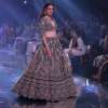 Representing the modern bride on the ramp, the graceful beauty sported a lehenga which carried varying levels of jaw-dropping jaal exposure with increased coverage of intricate hand-done butti work. And while elaborate gold embellishments and opulent cutwork hem details made a strong showing on the runway, minimalist pastel floral motifs and classic hand stitched blouse presented a bridal counterpoint. Great for a late-autumn soirée or winter wedding, this showstopper lehenga creates a sense of whimsy freshness while still being ultra-sophisticated.