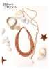 The collection includes fresh colors and modern details. Felt hats, crystal beaded tassle necklace, statement necklaces, rings, sunglasses, ear cuffs and cuff bracelets