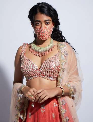 With the masks making their official way into bridal fashion, the high-end bridal designer, KALKI Fashion has jumped on the face mask "trend," giving brides and the guests plenty of rather fashionable options to wear at their upcoming weddings.