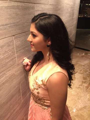 Mumbai, July 2016: Actress Mehreen Pirzada wore a peach gown by Neeta Lulla for SIIMA Awards. She accessorized the outfit with a pair of black and pearl long earrings by Shillpa Purii.